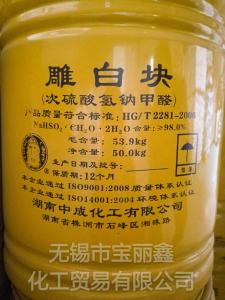 公司主營(yíng)食品級(jí)保險(xiǎn)粉、漂毛劑(鋅粉法和甲酸鈉法)、雕白塊系列(雕白粉,結(jié)晶雕白粉)、雕白鋅及造紙用無(wú)水亞硫酸鈉、水泥混凝土行業(yè)用等各類(lèi)化工產(chǎn)品,具有強(qiáng)大的供貨能力和相當(dāng)合理的價(jià)格。
